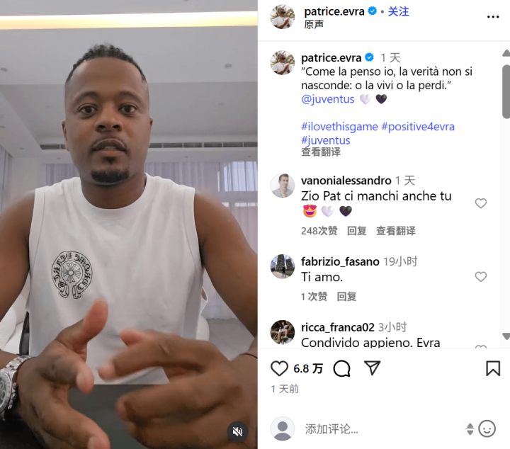 虎扑10月30日讯在图多尔从尤文图斯下课后,埃弗拉在Ins上发布了视频,谈到了他对尤文图斯表现的看法。
